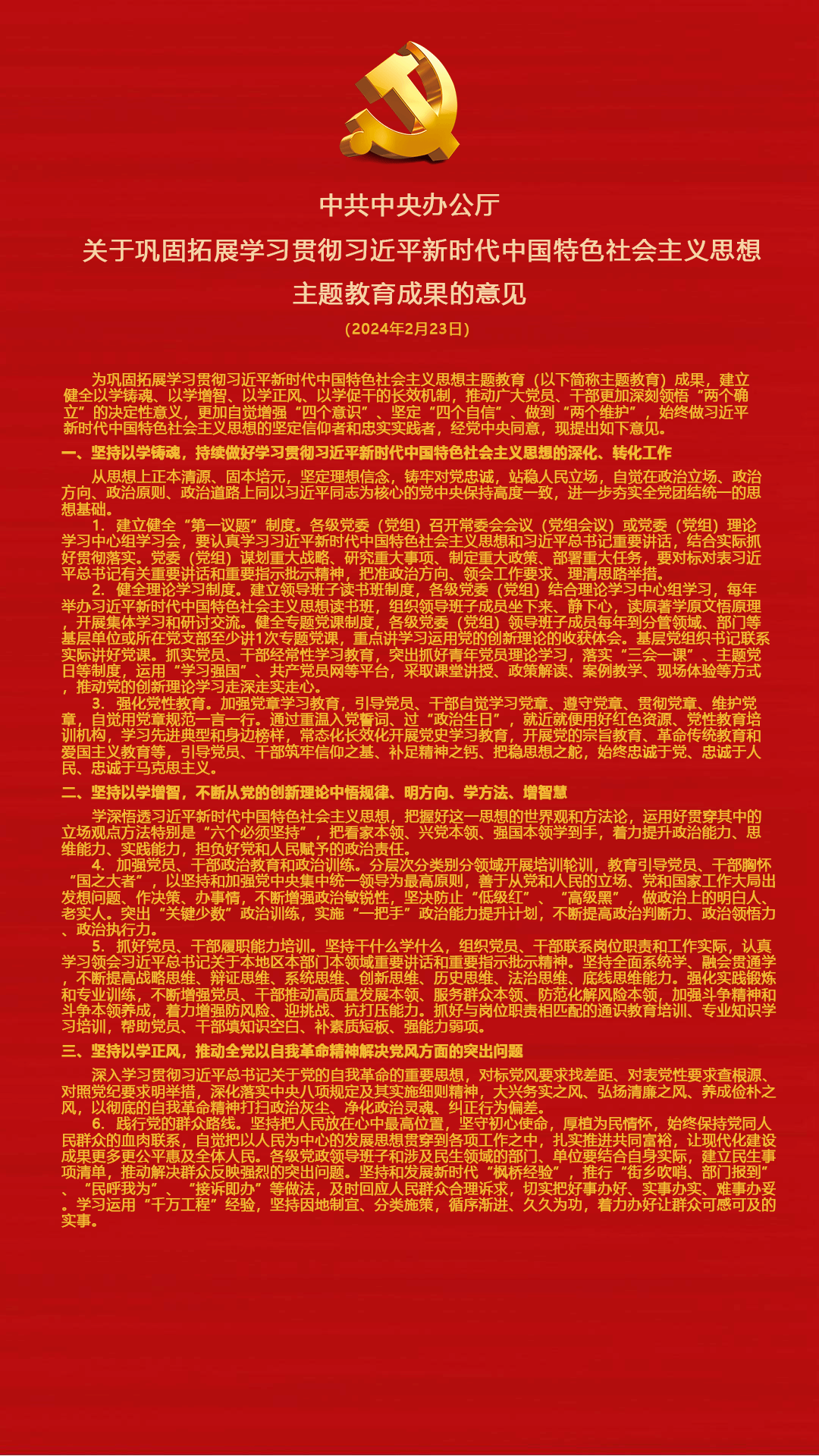关于巩固拓展学习贯彻习近平新时代中国特色社会主义思想主题教育成果的意见