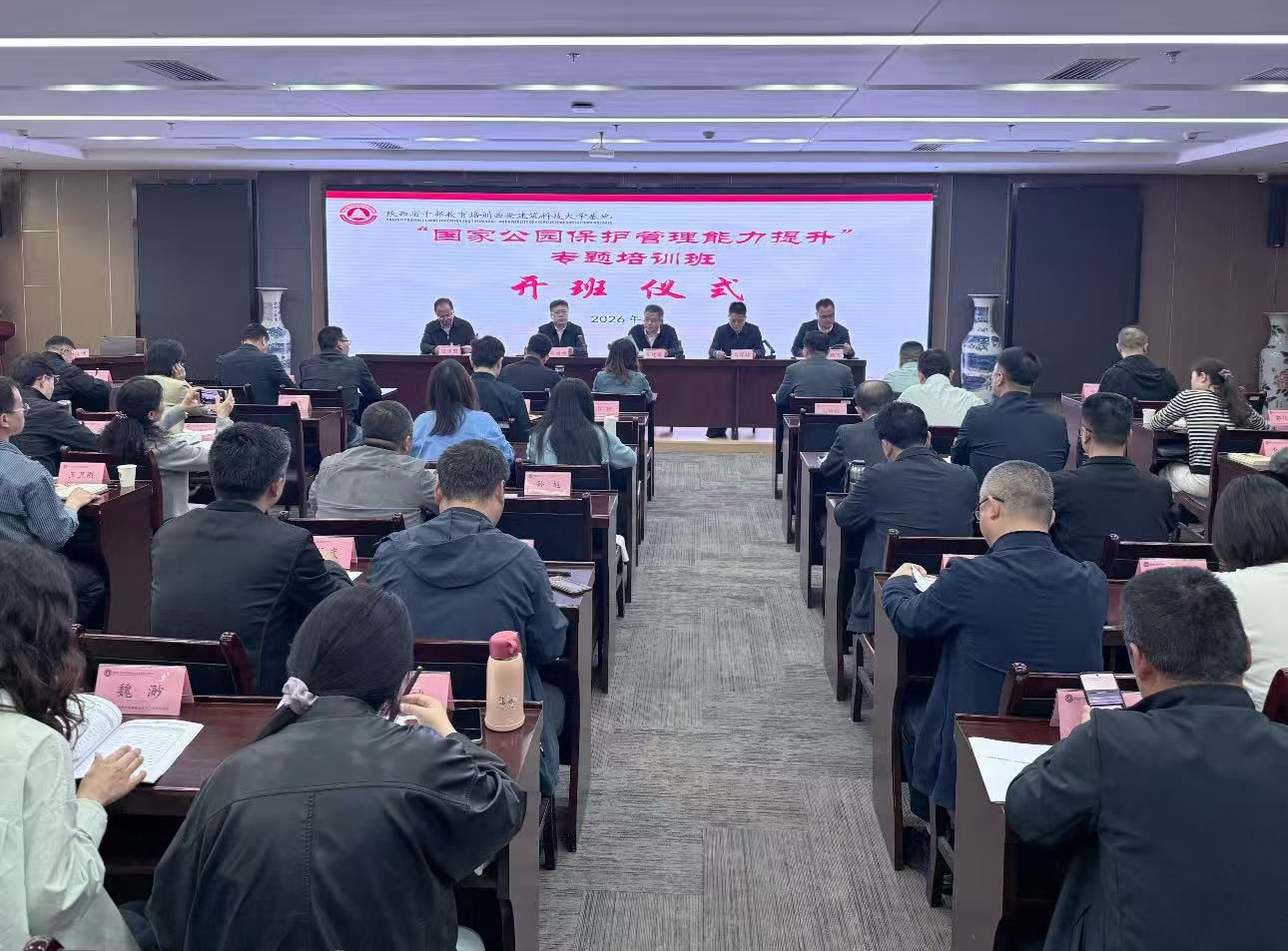 4月16日上午,国家公园保护管理能力提升培训班在我校开班。陕西省林业局党组成员、省森林资源管理局局长朱建军,我校副校长高旭阔,文学院院长范鹏飞,继续教育学院院长、基地办公室常务副主任任建国出席开班仪式。仪式由陕西省林业局监督管理处处长马军林主持。
